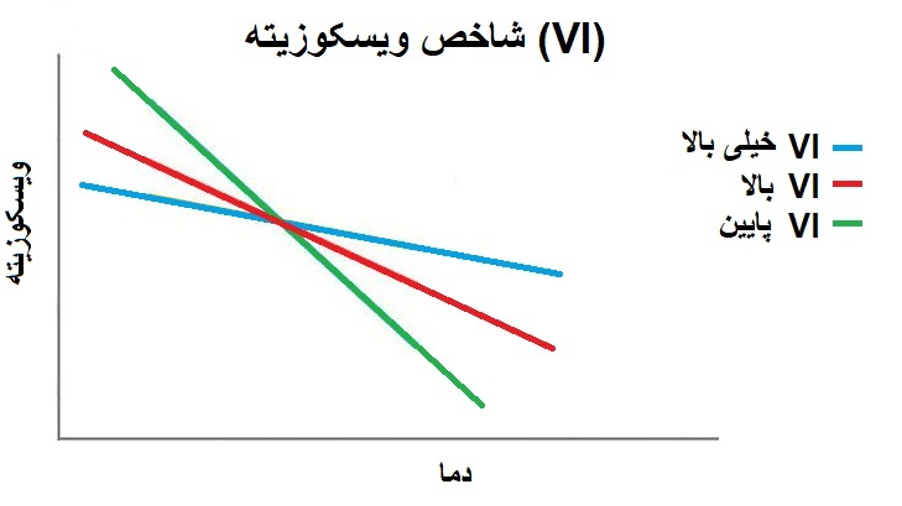 ویسکوزیته به مقاومت یک سیال در برابر جریان یافتن اشاره دارد. ویسکوزیته بالاتر نشان دهنده سیال غلیظتر است که منجر به جریان آهستهتر میشود. تغییرات ویسکوزیته با دما برای ارائه محافظت موثر و عملکرد مناسب در شرایط مختلف حائز اهمیت است. شاخص ویسکوزیته (VI) یک معیار عددی بدون بعد است که نشان میدهد ویسکوزیته یک روانکننده چقدر با تغییرات دما تغییر میکند. این شاخص امکان مقایسه موثرتری از رفتار ویسکوزیته روغنهای مختلف را با تغییر دما فراهم میکند VI .بالاتر نشان میدهد که روانکننده به طور مداوم ویسکوزیته خود را در طیف وسیعی از دماها حفظ میکند، که برای کاربردهای مختلف مانند موتورها یا سیستمهای هیدرولیک مفید است.